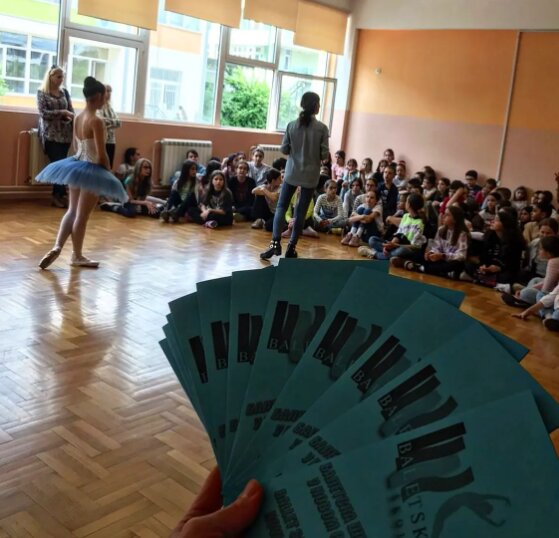 У жељи да на што бољи и квалитетнији начин промовишемо нашу школу, сваке године током априла и маја организујемо манифестацију „Отворена врата“. Том приликом ученици наше школе посећују основне школе у граду или буду домаћини ученицима који желе да упознају сву лепоту балетске игре.